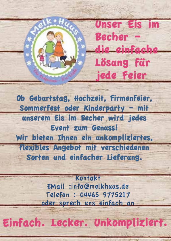Vom Fahrrad absteigen, eine Rast einlegen und sich verwöhnen lassen. Ein Melkhus ist hierfür der ideale Ort. Seit 2001 stehen die liebevoll gestalteten Häuschen im Nordwesten Niedersachsens an verschiedenen Radwanderwegen. Landfrauen verwöhnen hier ihre Gäste mit leckeren Milchspezialitäten zb. Eis